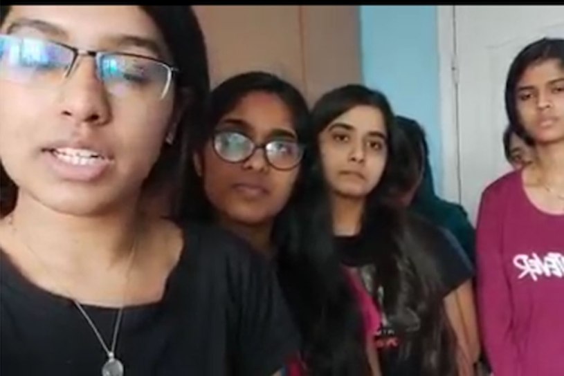 Malavika (third from left) and her friends at the Medical Institute of Sumy State University have released a video for immediate help from Indian authorities