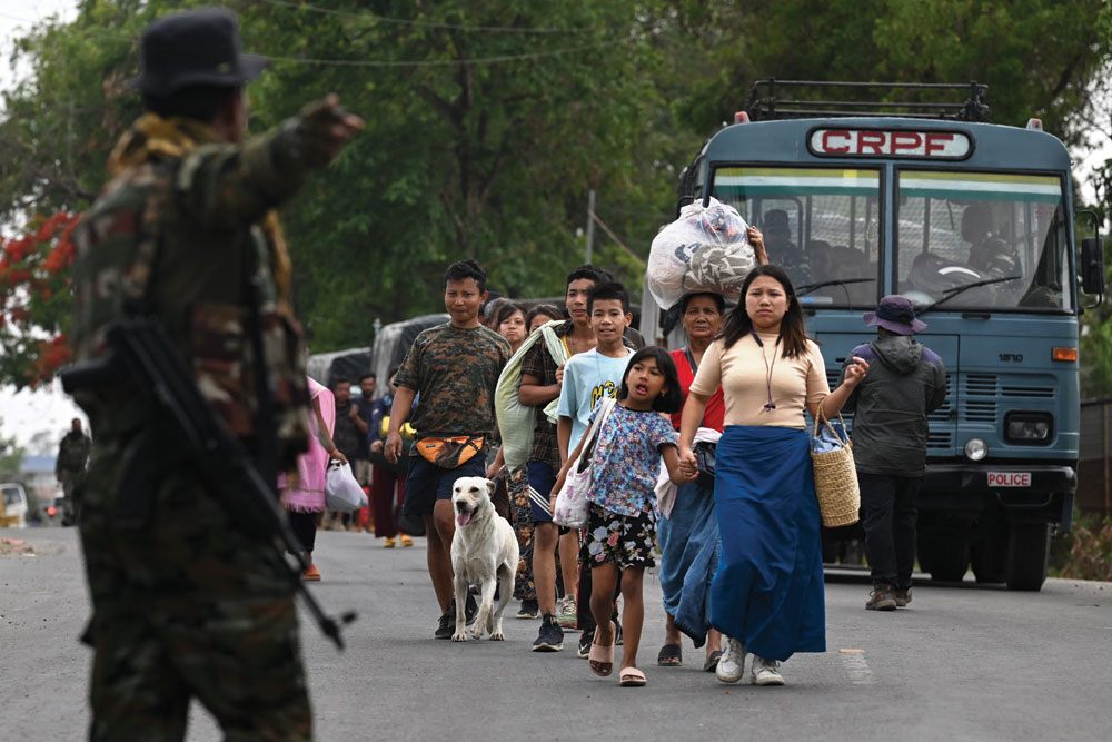 Meitei refugees at a transit point after being evacuated from Churachandpur, May 9, 2023 (Photos: AFP)