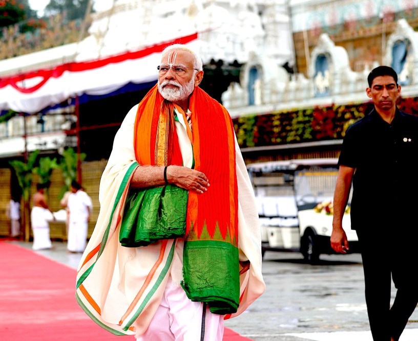 PM offers prayers at Sri Venkateswara Swamy Temple in Tirumala, Andhra Pradesh in November 2023. (Prime Minister’s Office of India, Wikiimedia Commons, GODL-India)