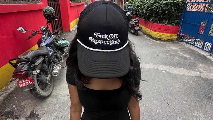 Along with a caption that says, “Nepal has its first female Prime Minister. To those spreading hate or rumors about me… here’s a CAP for you. While also ensuring that no populist returns. Long live @gen.znepal,” there is a photo of Pandey bending her face forward to brandish the message on her cap: “F*ck off Respectfully.”